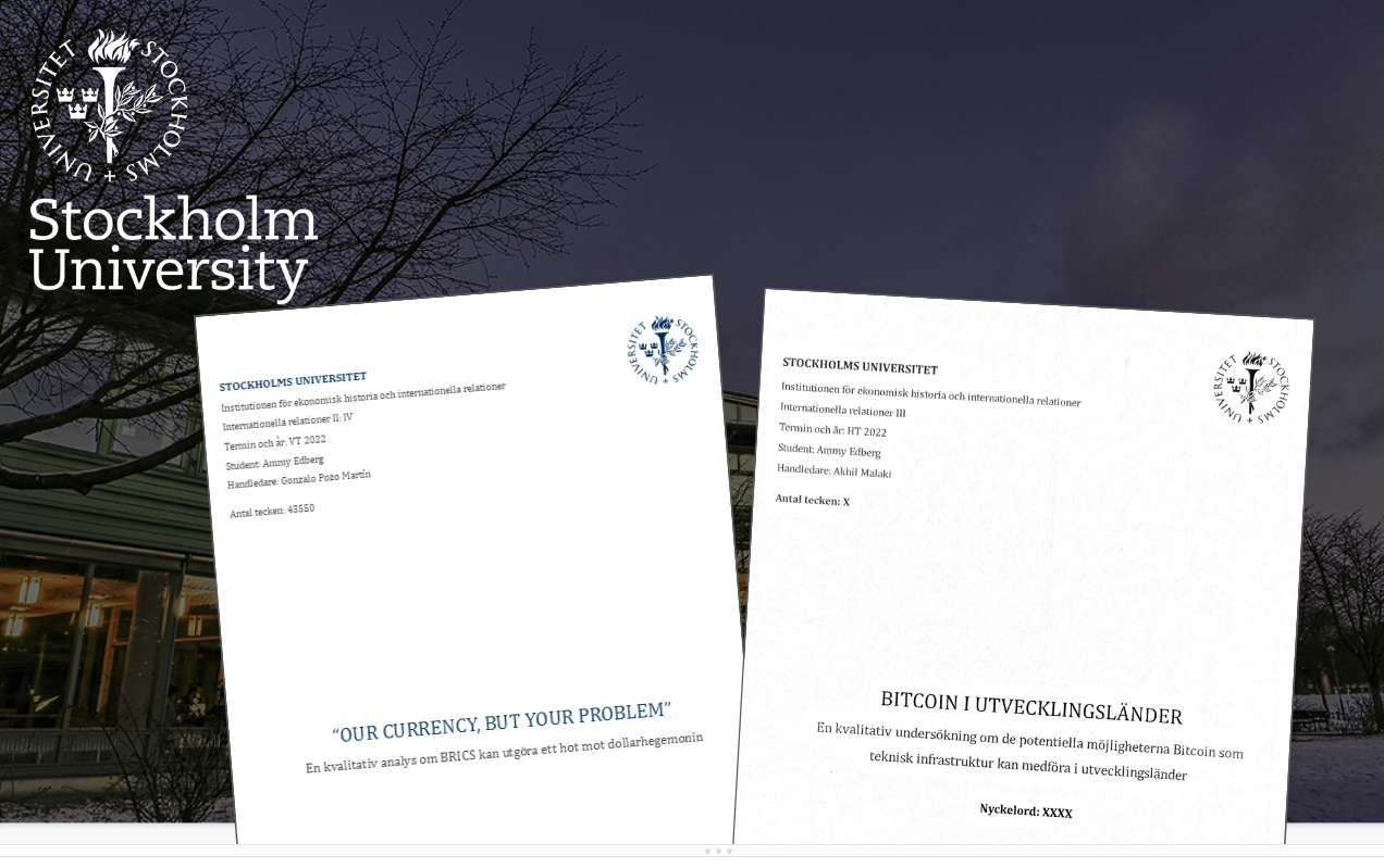 - VT2022 - ”OUR CURRENCY, BUT YOUR PROBLEM” ( Swedish | English ) - USA:s monetära hegemoni har sedan decennier tillbaka varit föremål för studier. Sedan kollapsen av Bretton Woodssystemet har episoder av ihållande svaghet vad gäller dollarn väckt tvivel om den amerikanska dollarns status som internationellt dominerande reservvaluta. Medan en del internationella monetära myndigheter accepterar dollarhegemonin finns det vissa krafter som försöker motarbeta den, en framstående sådan är BRICS (Brasilien, Ryssland, Indien, Kina och Sydafrika). År 2009 hölls det första toppmötet för BRIC med huvudpunkten att övervinna finanskrisen och etablera ett nytt och mer rättvist internationellt monetärt system (BIS 2016). Kan BRICS utgöra ett hot mot den nuvarande dollarhegemonin? Det har denna studie för avsikt att besvara genom en teoriprövande litteraturgranskning.